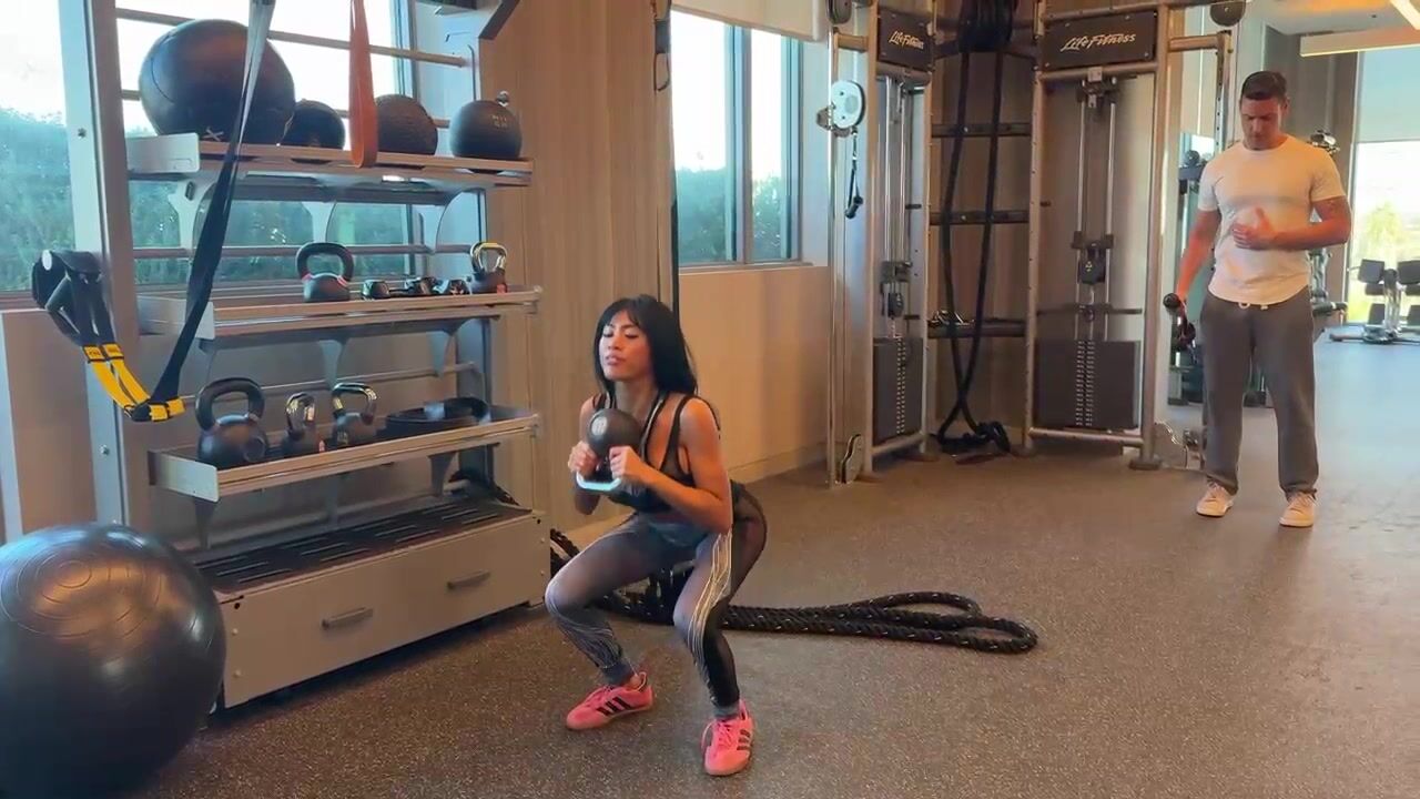 Nicole Doshi and Ember Snow get wild with a random gym guy